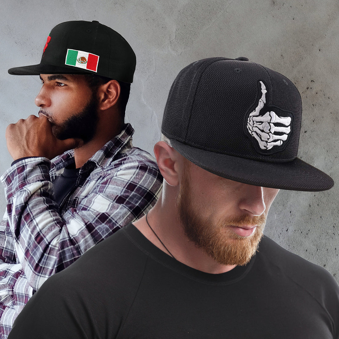 We have regular sizes, bigger sizes and even smaller sizes for your kids. We've got everyone's heads covered, from the big and tall to the itty bitty. Of course, we have varying colors and designs as well. From the simple colored baseballs caps for messy hair days, to the colorfully designed graphics for your Friday night out - you can find a cap for everyone you love.