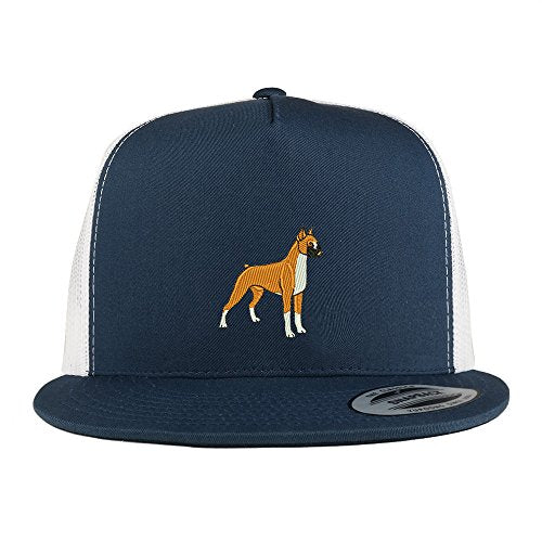 Trendy Apparel Shop Boxer Embroidered 5 Panel Flat Bill 2-Tone Trucker Mesh Cap
