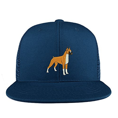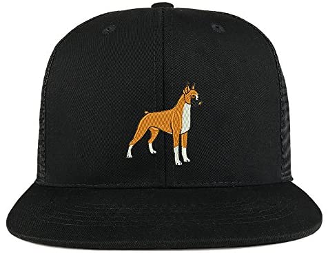 Trendy Apparel Shop Boxer Embroidered Cotton Flat Bill Mesh Back Trucker Cap