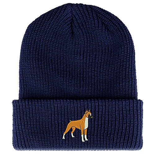 Trendy Apparel Shop Boxer Embroidered Ribbed Cuffed Knit Beanie