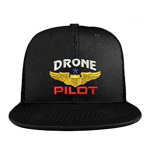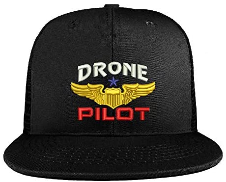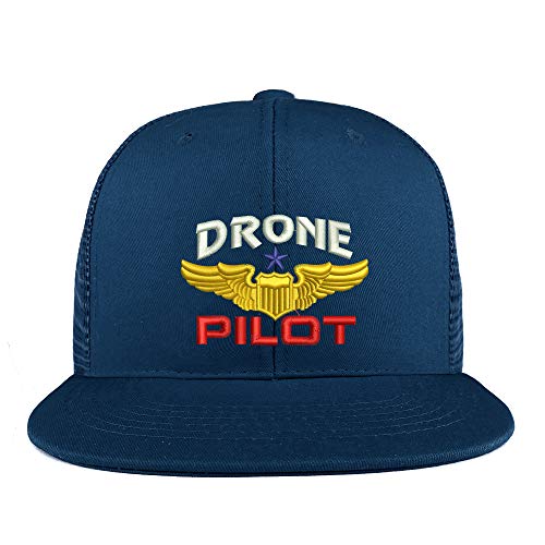 Trendy Apparel Shop Drone Pilot Aviation Wing Embroidered Cotton Flatbill Mesh Back Trucker Cap