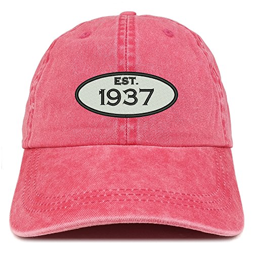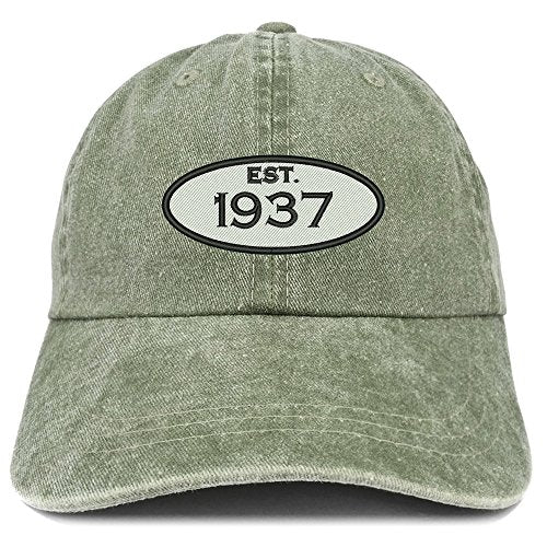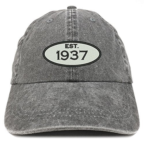 Trendy Apparel Shop Established 1937 Embroidered 84th Birthday Gift Pigment Dyed Washed Cotton Cap