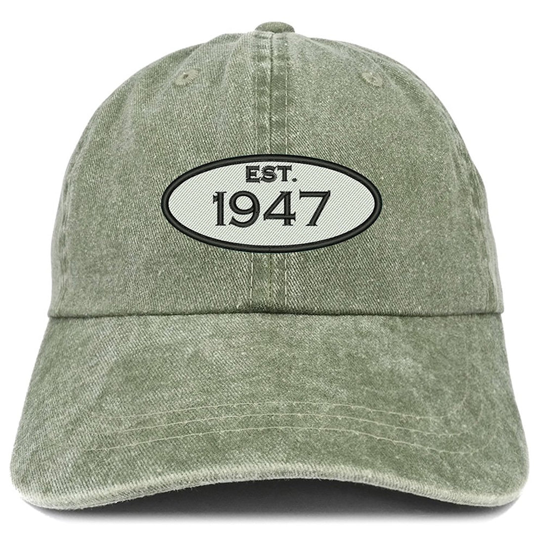 Trendy Apparel Shop Established 1947 Embroidered 72nd Birthday Gift Pigment Dyed Washed Cotton Cap