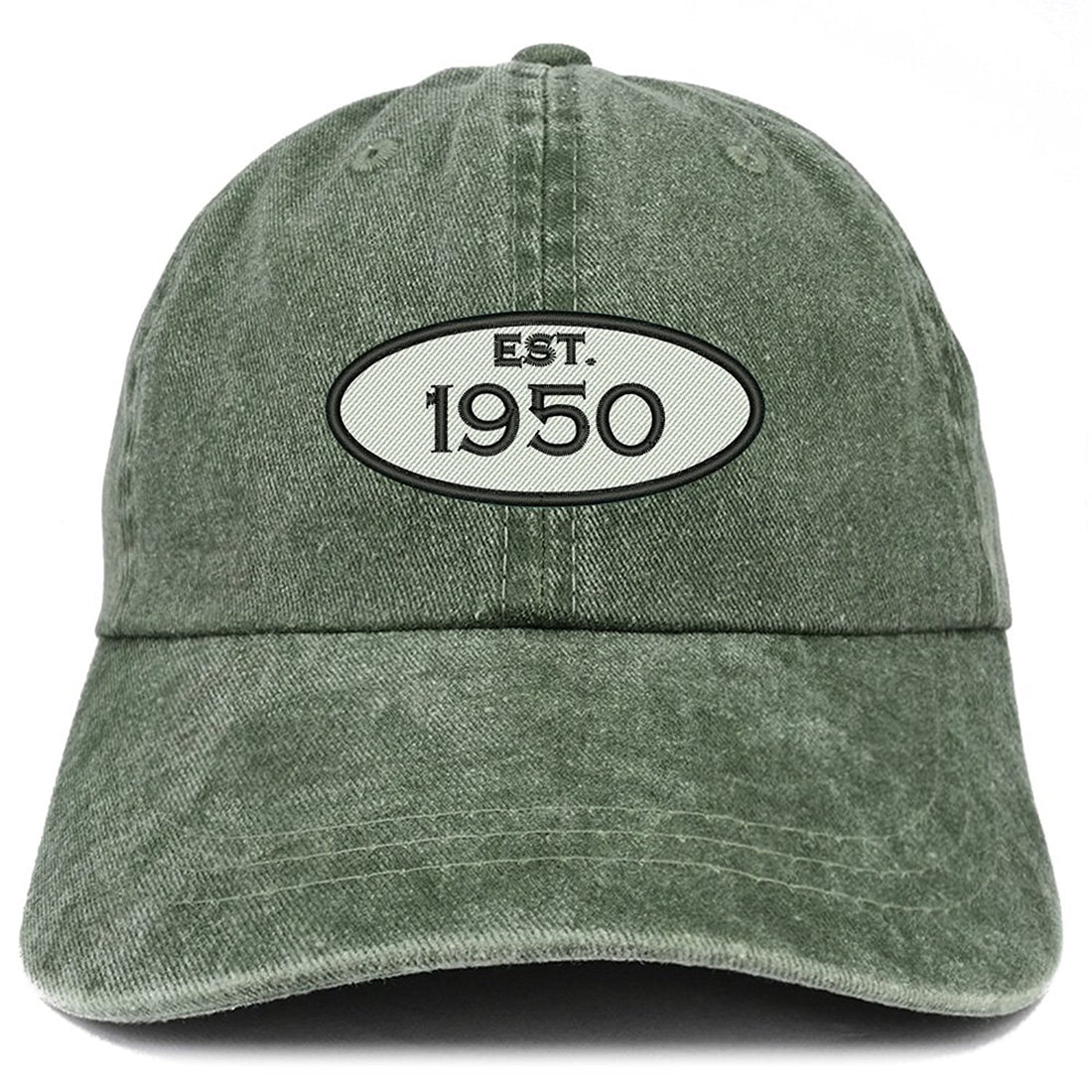 Trendy Apparel Shop Established 1950 Embroidered 69th Birthday Gift Pigment Dyed Washed Cotton Cap