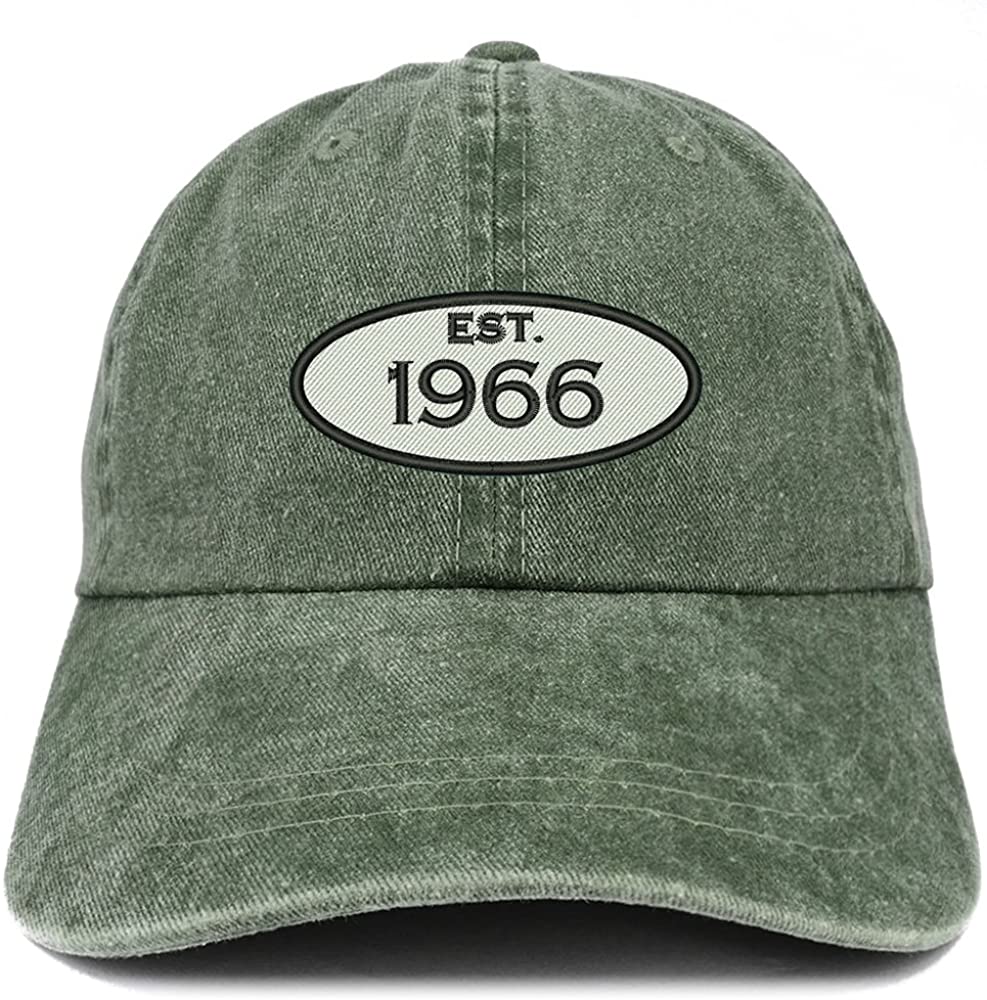 Trendy Apparel Shop Established 1965 Embroidered 53rd Birthday Gift Pigment Dyed Washed Cotton Cap - Olive