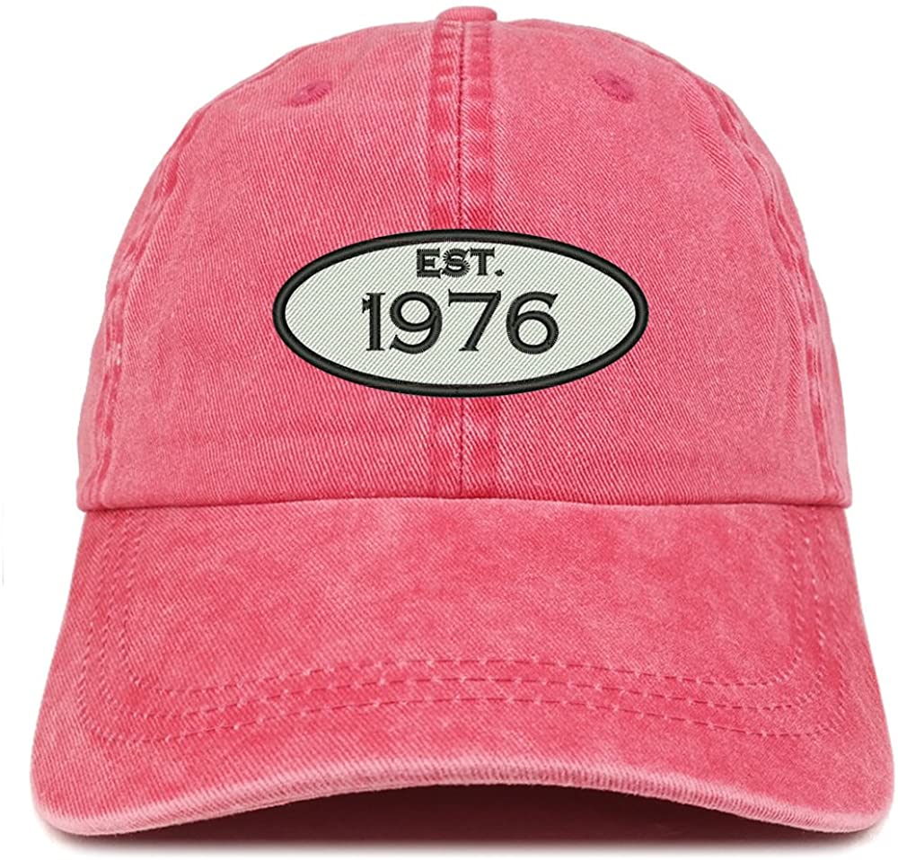 Trendy Apparel Shop Established 1975 Embroidered 43rd Birthday Gift Pigment Dyed Washed Cotton Cap - Dark Green