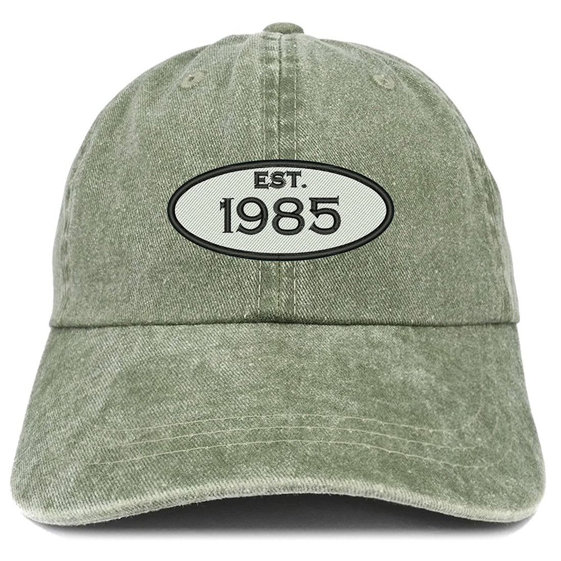 Trendy Apparel Shop Established 1985 Embroidered 34th Birthday Gift Pigment Dyed Washed Cotton Cap