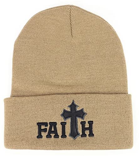 Our Trendy Apparel Shop Faith Cross Embroidered Winter Long Cuff Beanie is perfect for representing Christianity and for religious outings. This cuff long beanie features high quality embroidery on the front. Made of 100% Acrylic. Measures 8 inches wide and 9 inches long. Cuff long beanie hat. Stretchable and flexible. Ensures a comfortable fit. One size fits most.