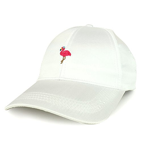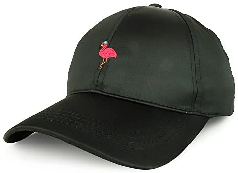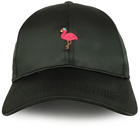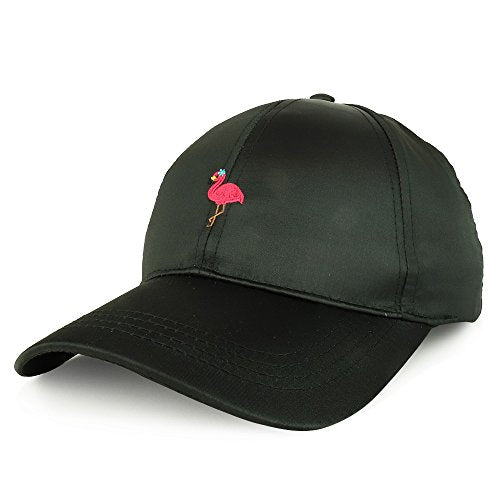Our Trendy Apparel Shop Flamingo Emoticon Design Embroidered Satin Baseball Cap is a great hat for any outing and occasion. This satin baseball cap features high quality embroidered design of flamingo on the front. Made of 100% Polyester. Stiff and pre-curved bill. Mid profile. Structured crown. 6 panels. Fitted with an inner sweatband. Finished with an adjustable metal buckle strap closure. One size fits most.