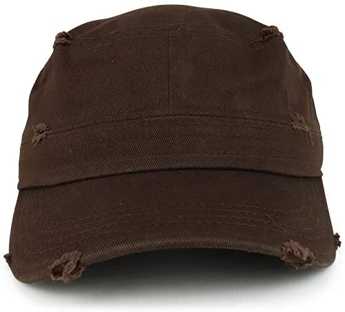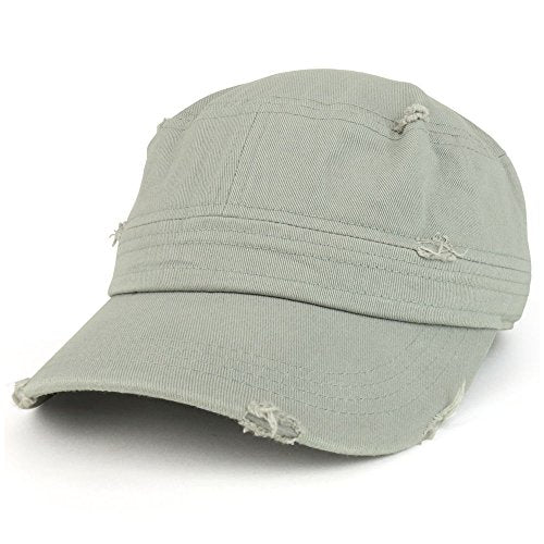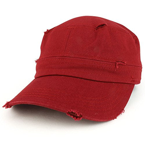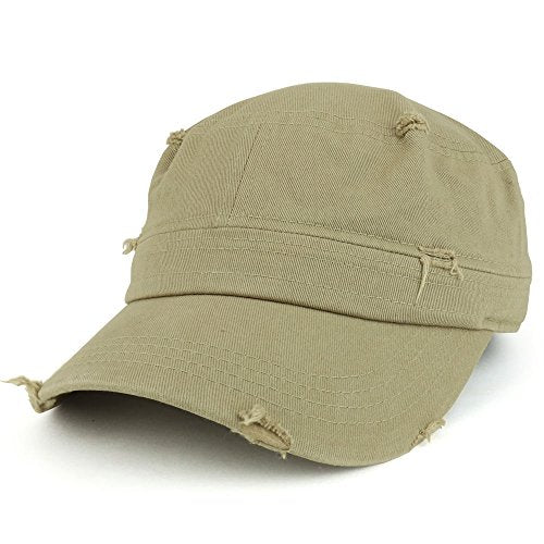 Trendy Apparel Shop Frayed Vintage Flat Top Style Castro Army Cap