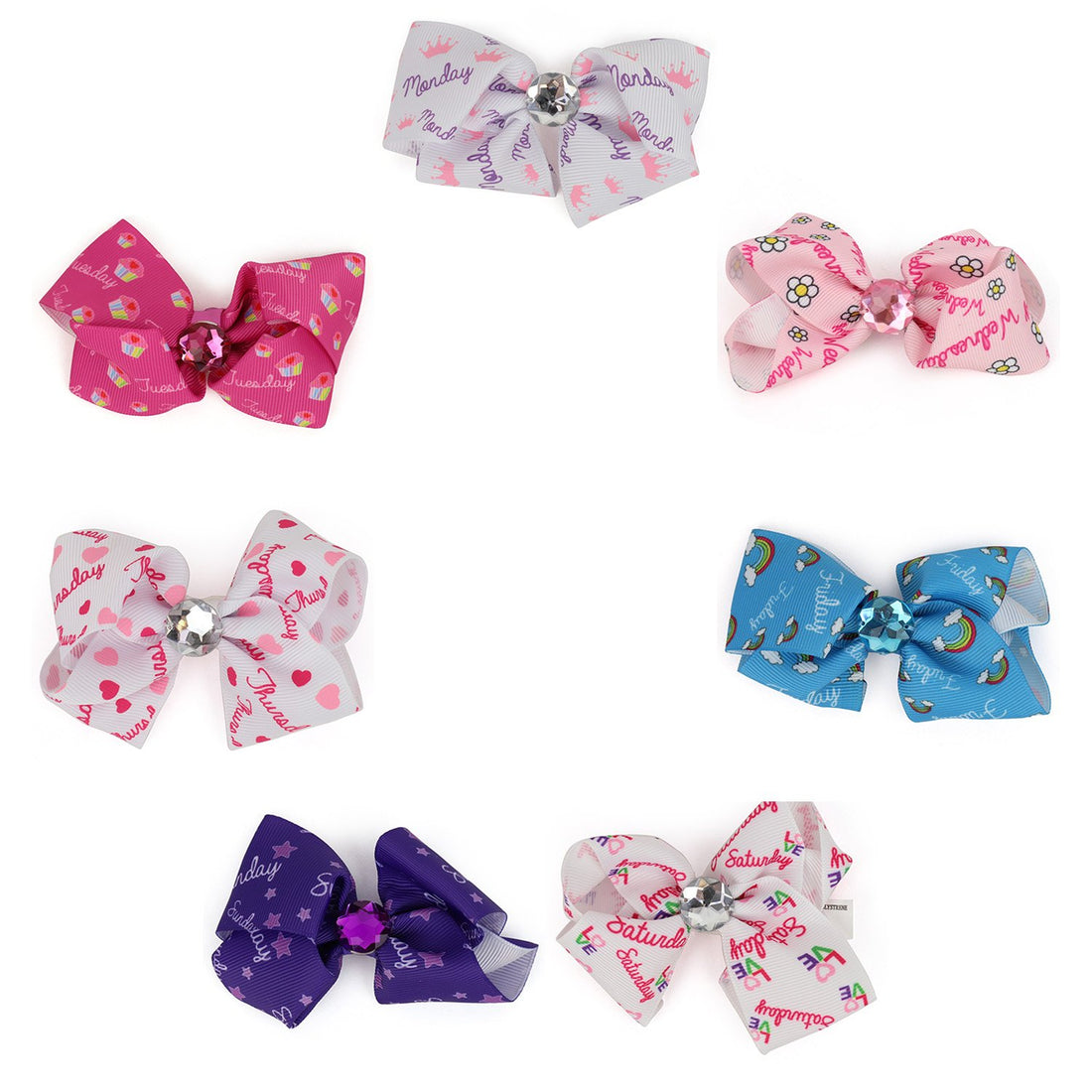Trendy Apparel Shop Girl's 7 Day Accessory 7 Bow Hair Clips Set