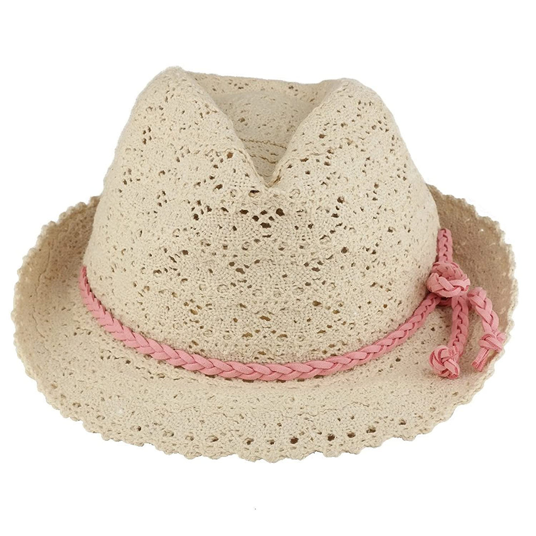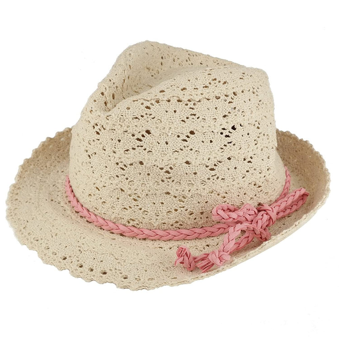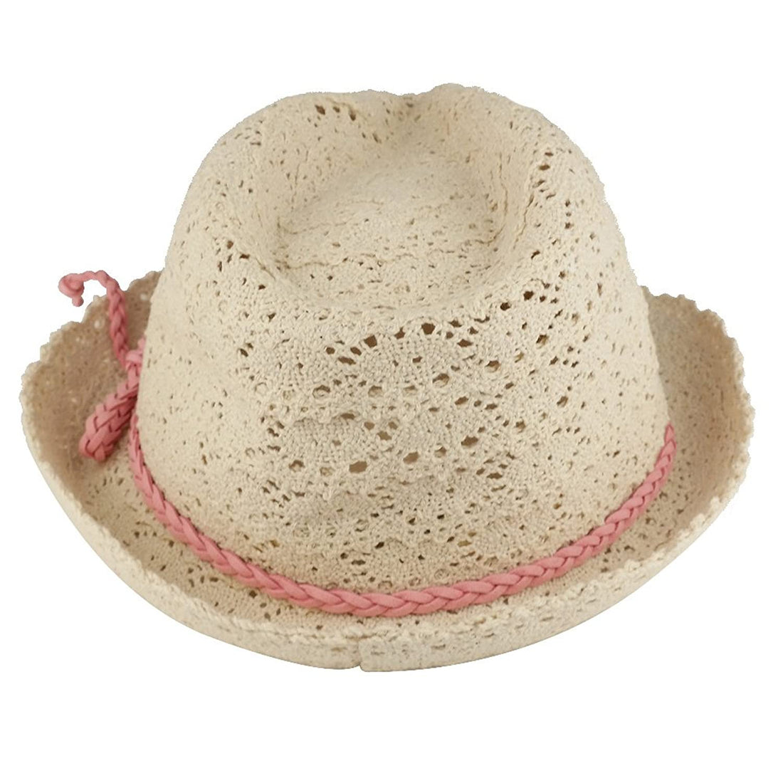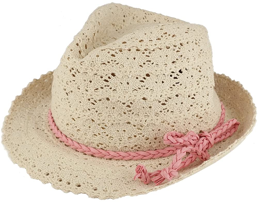 Trendy Apparel Shop Girl's Crocheted Crushable Fedora Hat With Pink Braided Hat Band