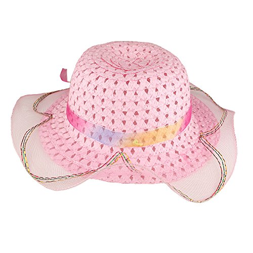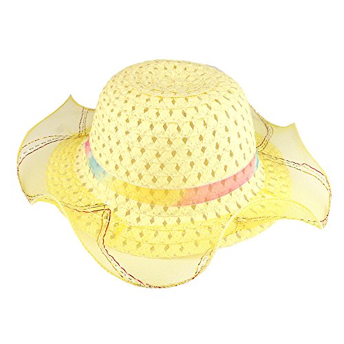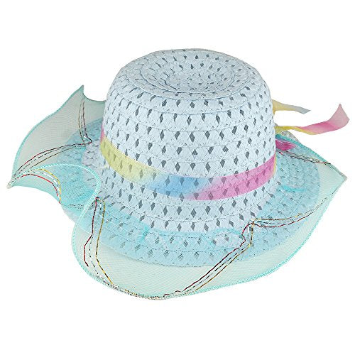 Our adorable Girl's Summer Straw Hat with Glitter Ruffled Mesh Brim and Rainbow Hat Band is a stylish summer hat for your little girls. This youth size straw sun hat features ruffled mesh brim that is accented with glitter lines. Made of 100% Straw. Round crown. Flexible and flat brim with ruffles. A rainbow ribbon hat band is accented around the crown. Fitted with an elastic chin string. One size fits most girls aged from 2 to 5 years old.