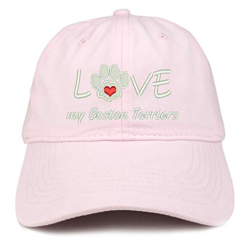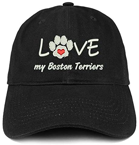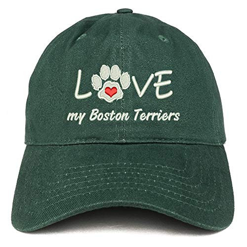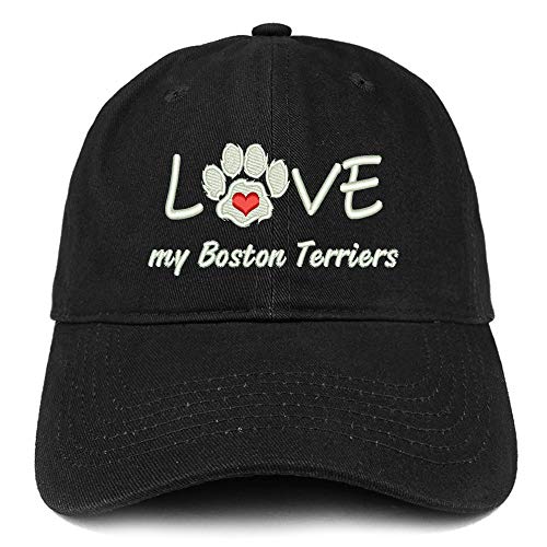 Trendy Apparel Shop I Love My Boston Terriers Embroidered Soft Crown 100% Brushed Cotton Cap