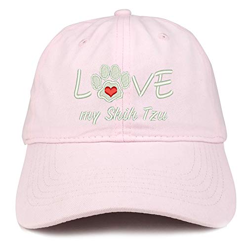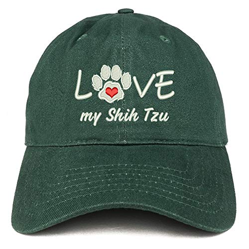 Trendy Apparel Shop I Love My Shih Tzu Embroidered Soft Crown 100% Brushed Cotton Cap