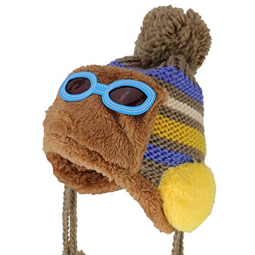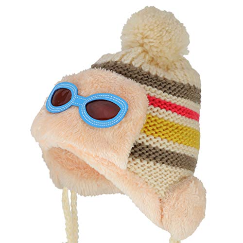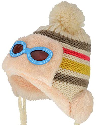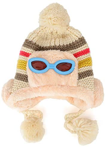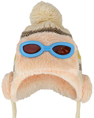 - Cute and adorable goggle face knitted beanie hat with ear flaps for your little boys and girls