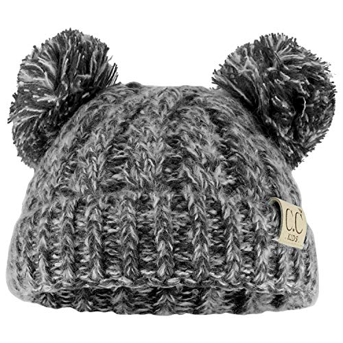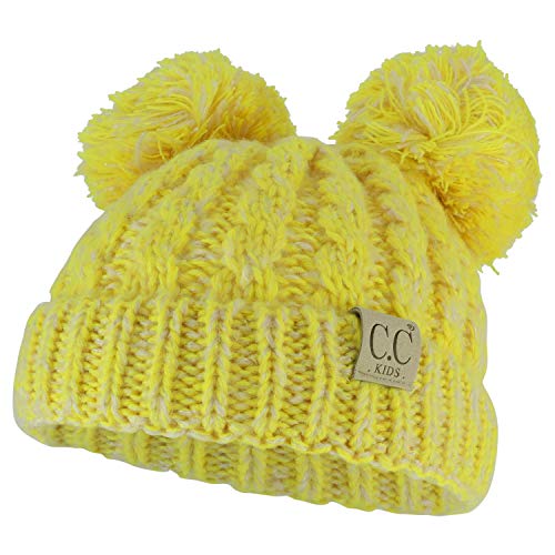 Trendy Apparel Shop Kid's Youth Size Winter Cable Knit 2 Pom Poms Beanie Hat