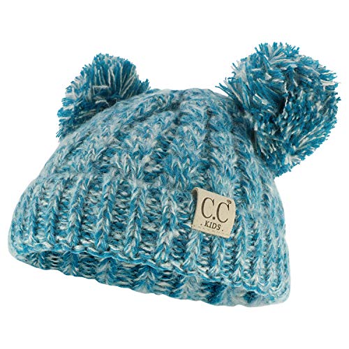 Trendy Apparel Shop Kid's Youth Size Winter Cable Knit 2 Pom Poms Beanie Hat. 100% Acrylic. Cute and warm cable knitted cuff long winter beanie for your little boys and girls. 2 pom poms are accented on top of beanie. Beanie measures around 7 inches wide and 6.5 inches long. Warm, soft, thick and stretchable material. One size fits most kids.