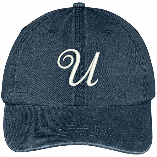 Trendy Apparel Shop Letter U Script Monogram Font Embroidered Washed Cotton Cap