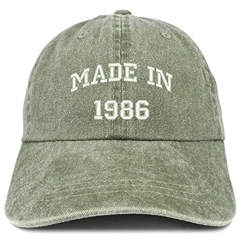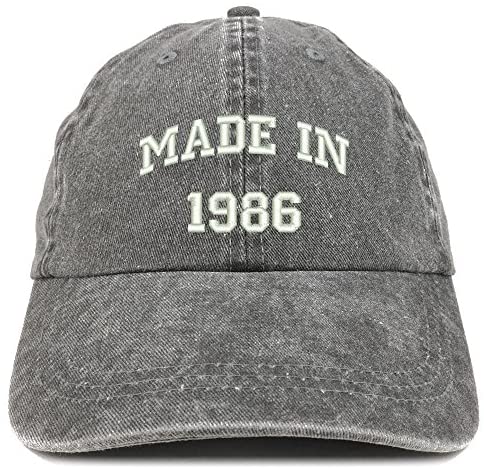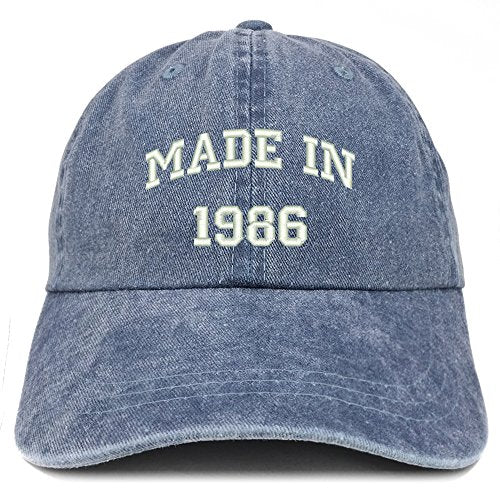 Trendy Apparel Shop Made in 1986 Text Embroidered 35th Birthday Washed Cap