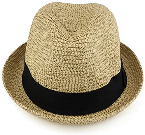 - Mens Fedora Hat with Paper Straw Braid