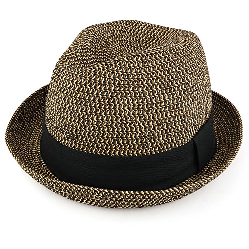Trendy Apparel Shop Mens Summer Tweed Fedora Hat with Paper Straw Braid