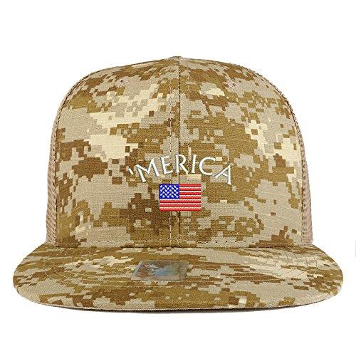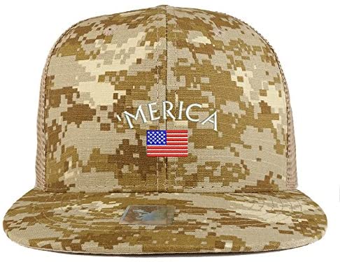 Trendy Apparel Shop Merica Small American Flag Embroidered Cotton Camo Flat Bill Mesh Trucker Cap