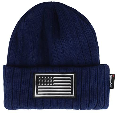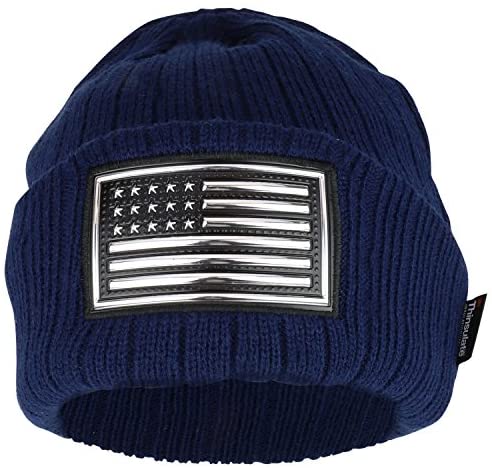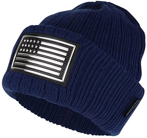 Our Trendy Apparel Shop Metallic PVC USA Flag Patched 3M Thinsulate Long Beanie is a perfect patriotic hat to show pride for USA. This cuffed long beanie hat features American flag metallic PVC patch on the front. Made of 100% Acrylic. Measures 9 inches wide and 9 inches long. 3M Thinsulate Insulation. Fleece lined inside. Thick, soft and warm material. Ribbed cuff long beanie. Easily stretchable. Ensures a comfortable fit. One size fits most.