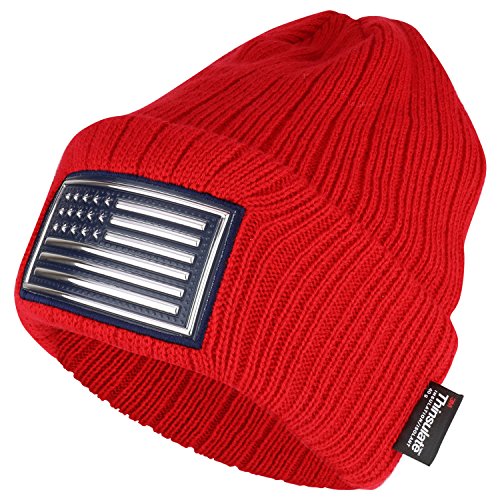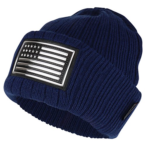 Trendy Apparel Shop Metallic PVC USA Flag Patched 3M Thinsulate Long Beanie