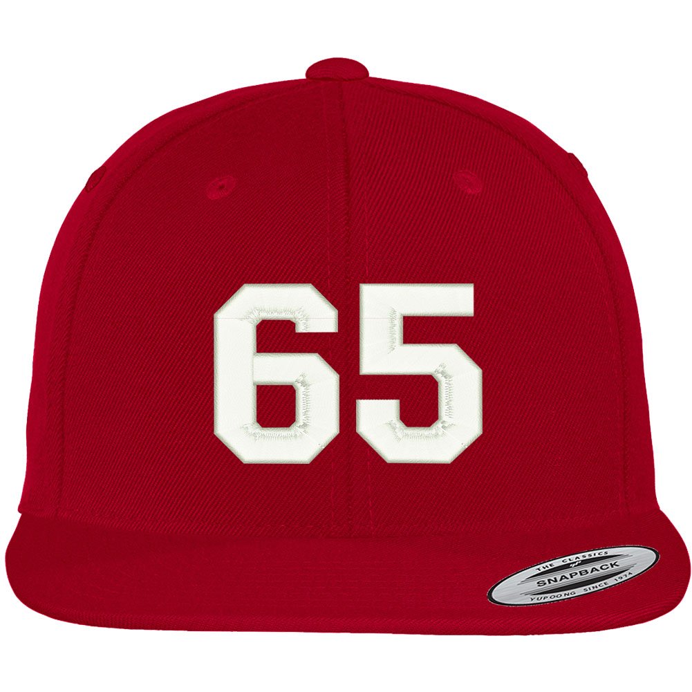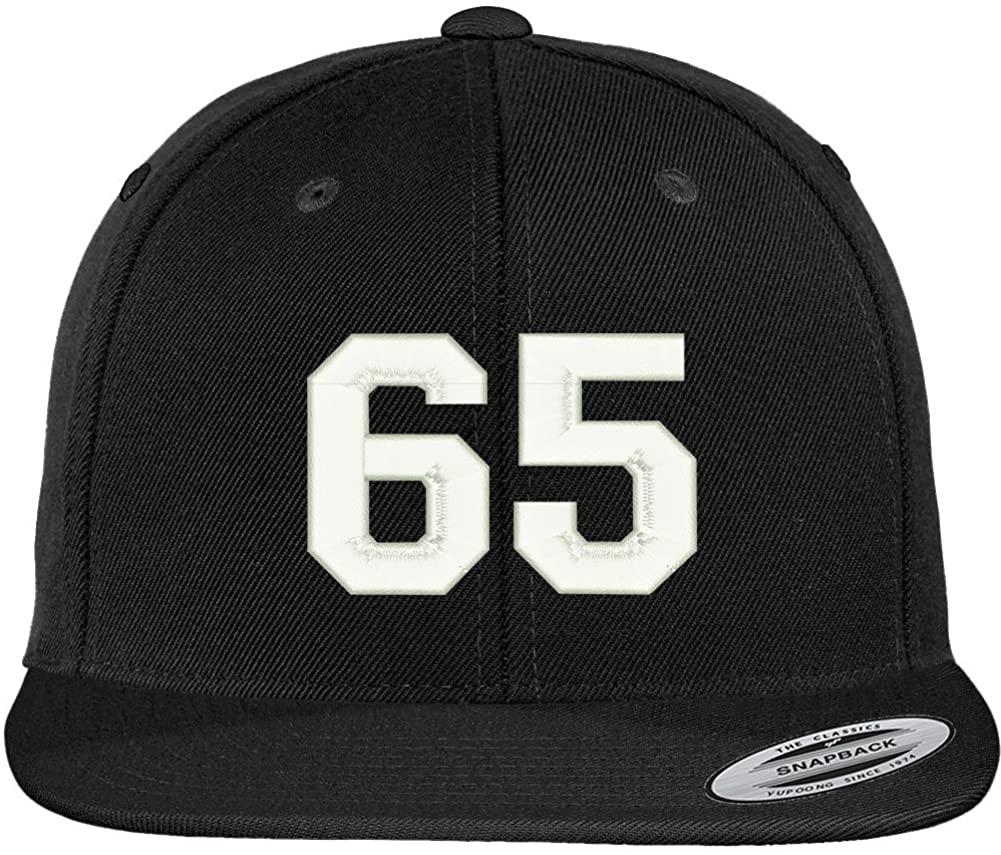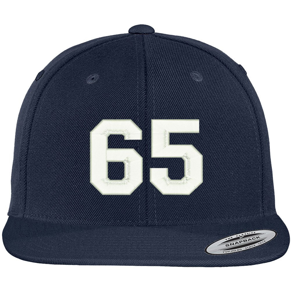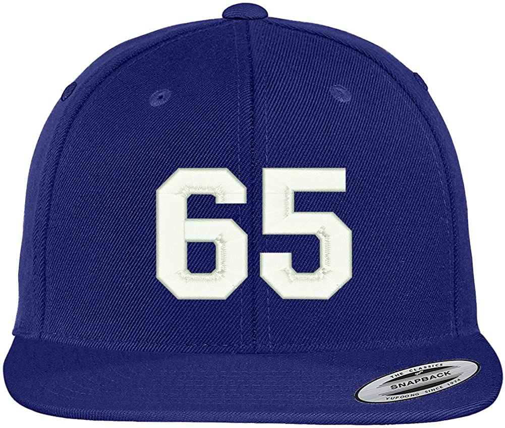 Trendy Apparel Shop Number 65 Collegiate Varsity Font Embroidered Flat Bill Snapback Cap