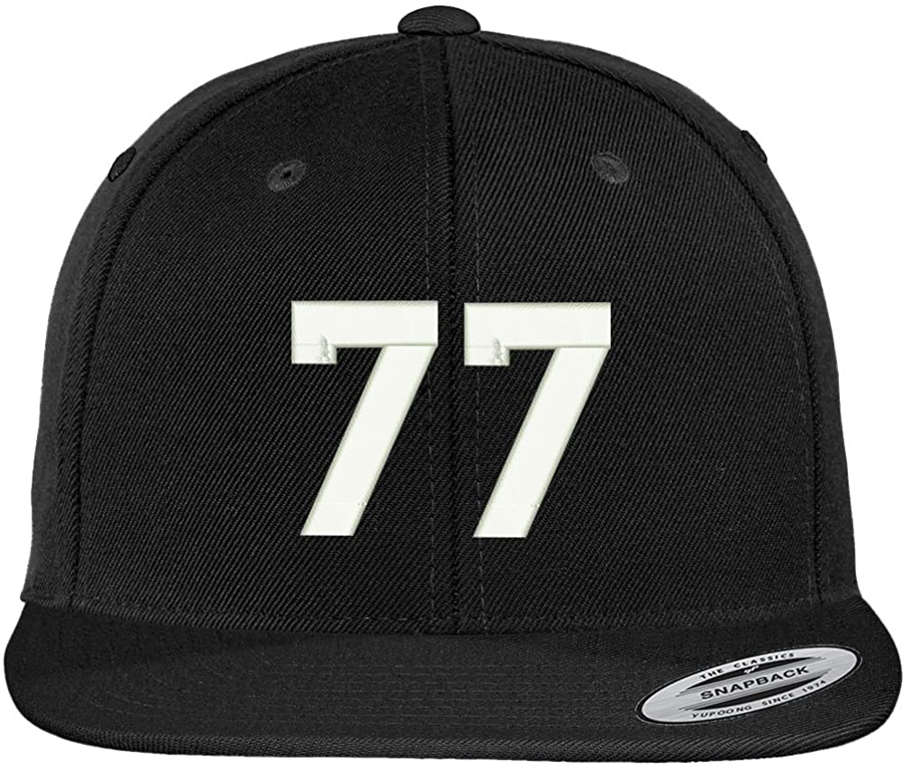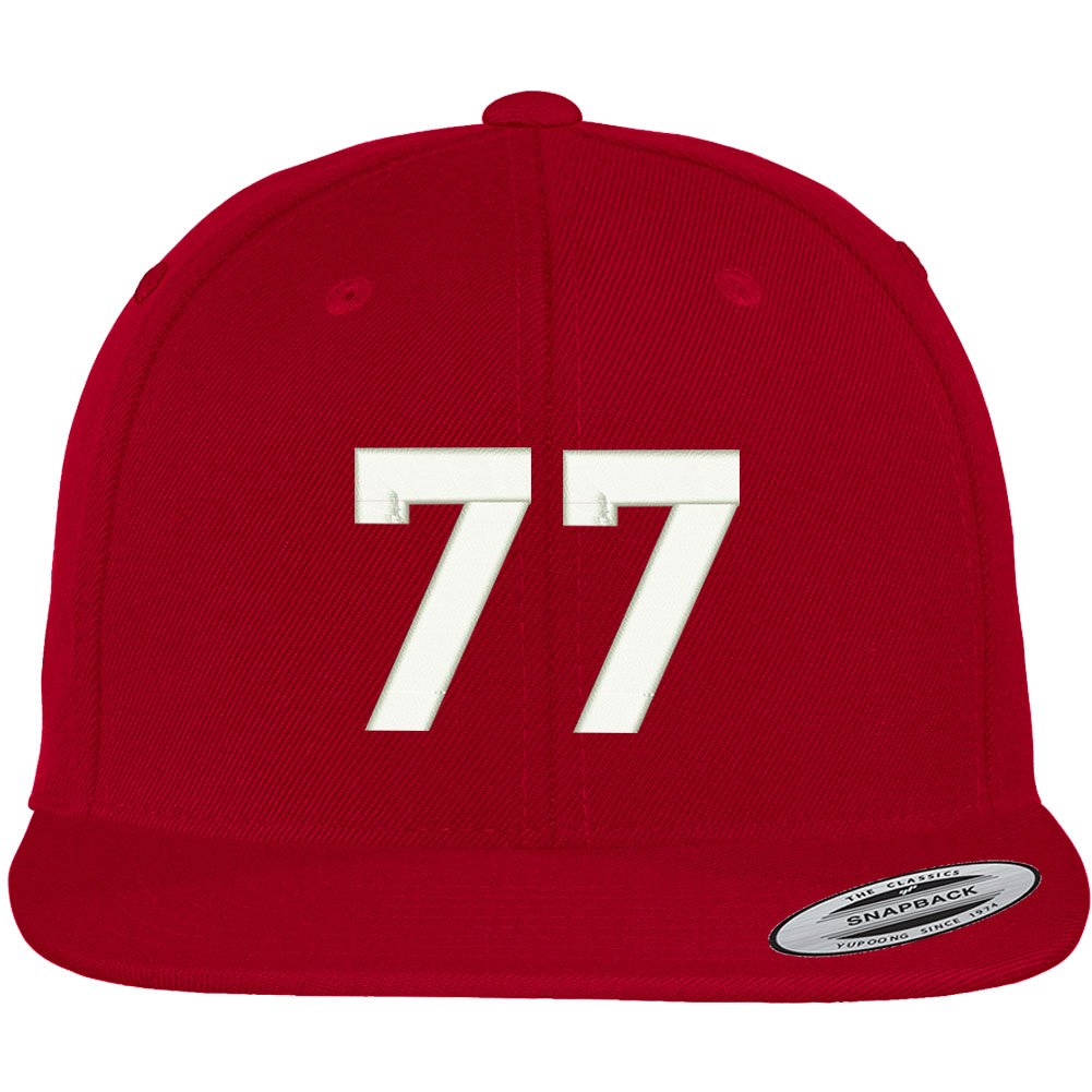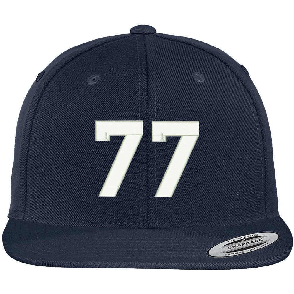 Trendy Apparel Shop Number 77 Collegiate Varsity Font Embroidered Flat Bill Snapback Cap