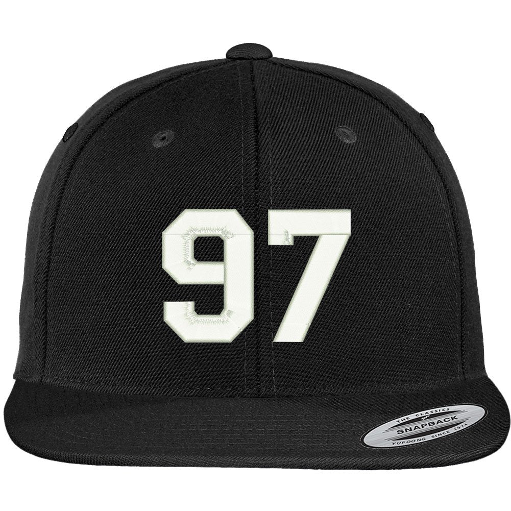 Trendy Apparel Shop Number 97 Collegiate Varsity Font Embroidered Flat Bill Snapback Cap - Red