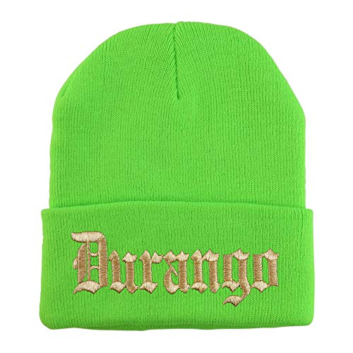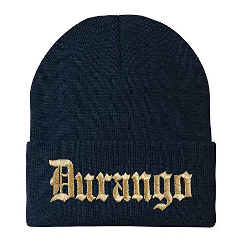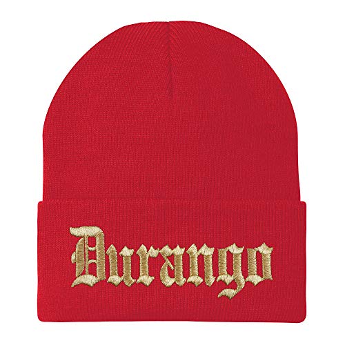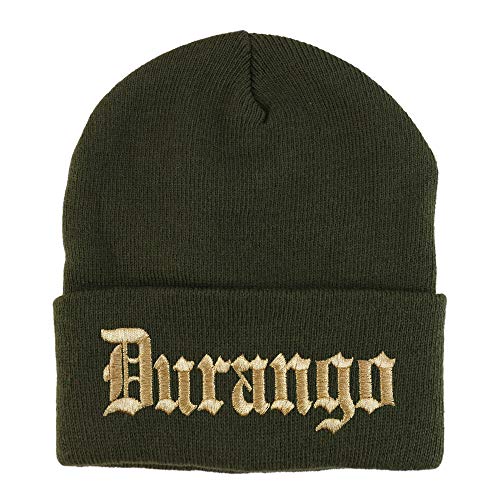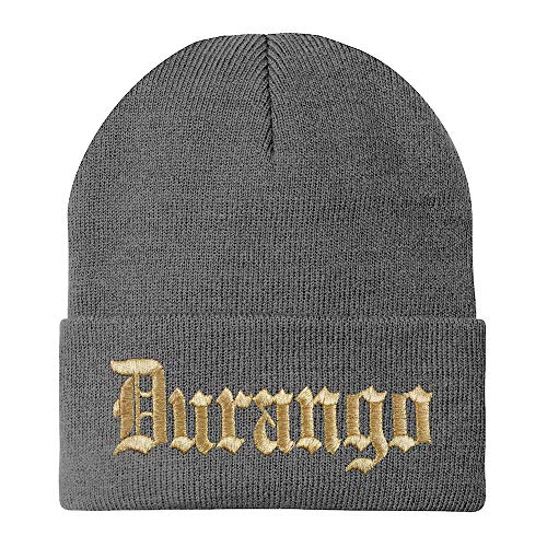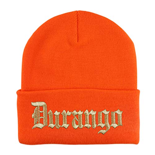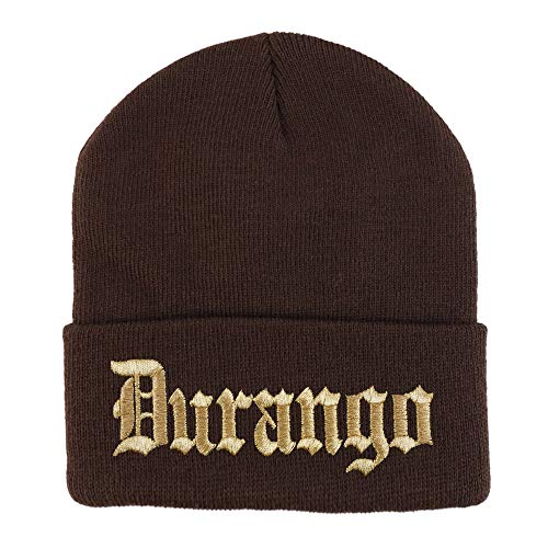 Trendy Apparel Shop Old English Durango Gold Embroidered Acrylic Knit Beanie Cap