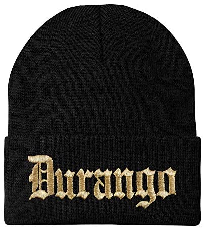 One size fits most winter acrylic beanie, stretches to fit most people.Embroidered in USA with gold thread to highlight old english font design. Long cuff style beanie, crown measures 12 inches deep.Manufactured from Bangladesh. Design embroidered in US.Comfortable acrylic knit beanies are perfect for chilly winter mornings. Show off your Mexican heritage!
