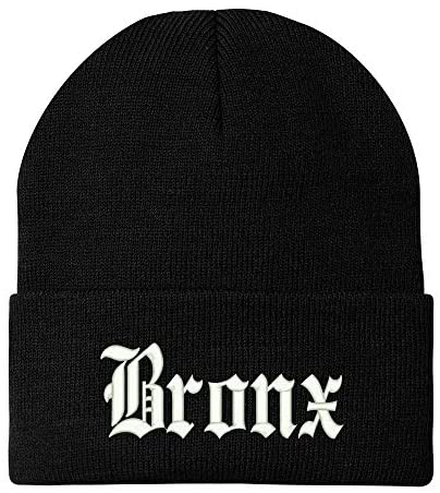 100% Acrylic. Old English Font Bronx City Embroidered Winter Long Cuff Beanie. High Quality Beanie. Embroidered in the USA. Classic Soft and Warm Folded Long Beanie Measrues about 12 inches when unfolded. Easily Strechable, ensures a comfortable fit. One Size Fits Most.