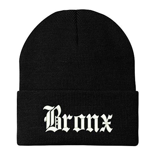 Trendy Apparel Shop Old English Font Bronx City Embroidered Winter Long Cuff Beanie
