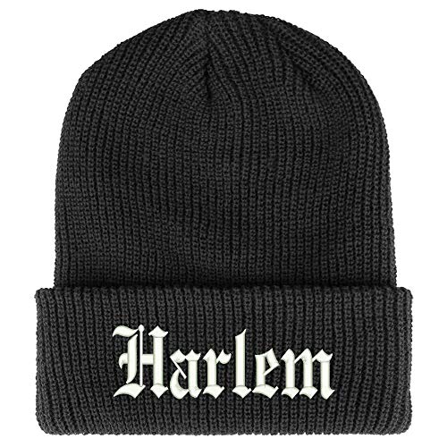 100% Acrylic. Old English Font Harlem City Embroidered Ribbed Cuff Knit Beanie. High Quality Beanie. Embroidered in the USA. Handwashable. Hypoallergenic Acrylic Material. Uncuffed length Measures about 10 inches. Easily Stretchable, ensures a comfortable fit. One Size Fits Most.