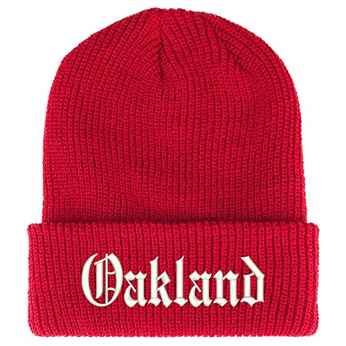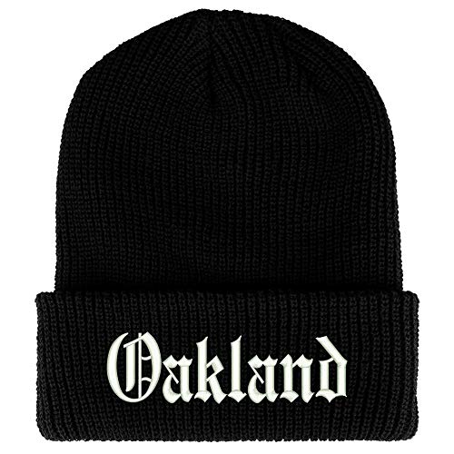 Trendy Apparel Shop Old English Font Oakland City Embroidered Ribbed Cuff Knit Beanie