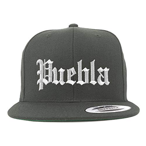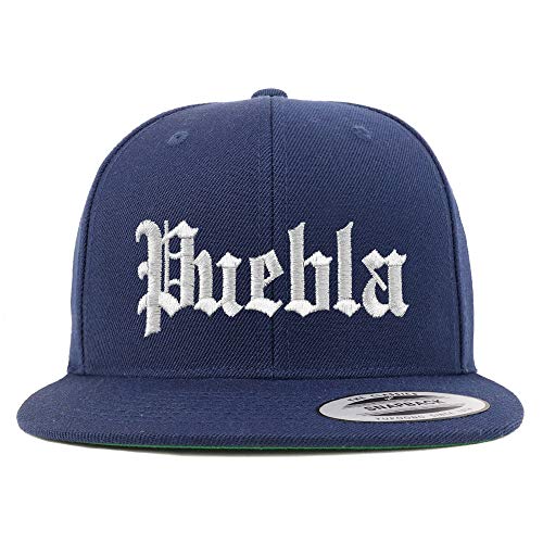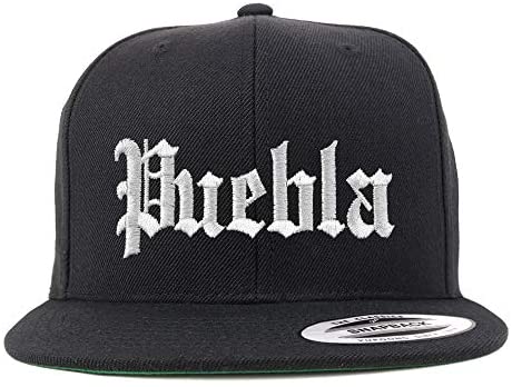 Trendy Apparel Shop Old English Puebla White Embroidered Flatbill Snapback Baseball Cap