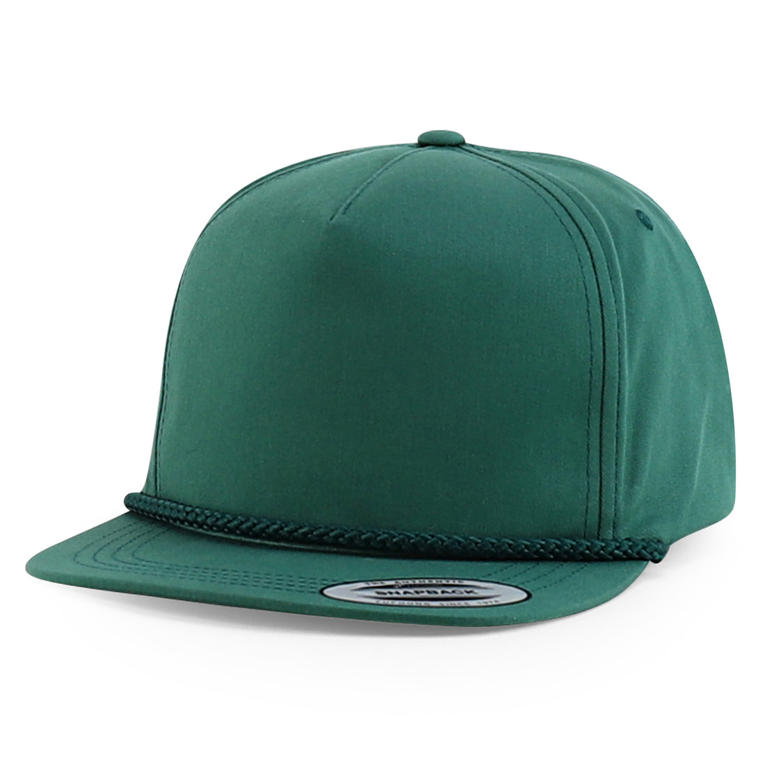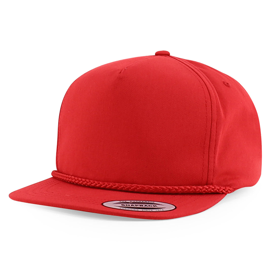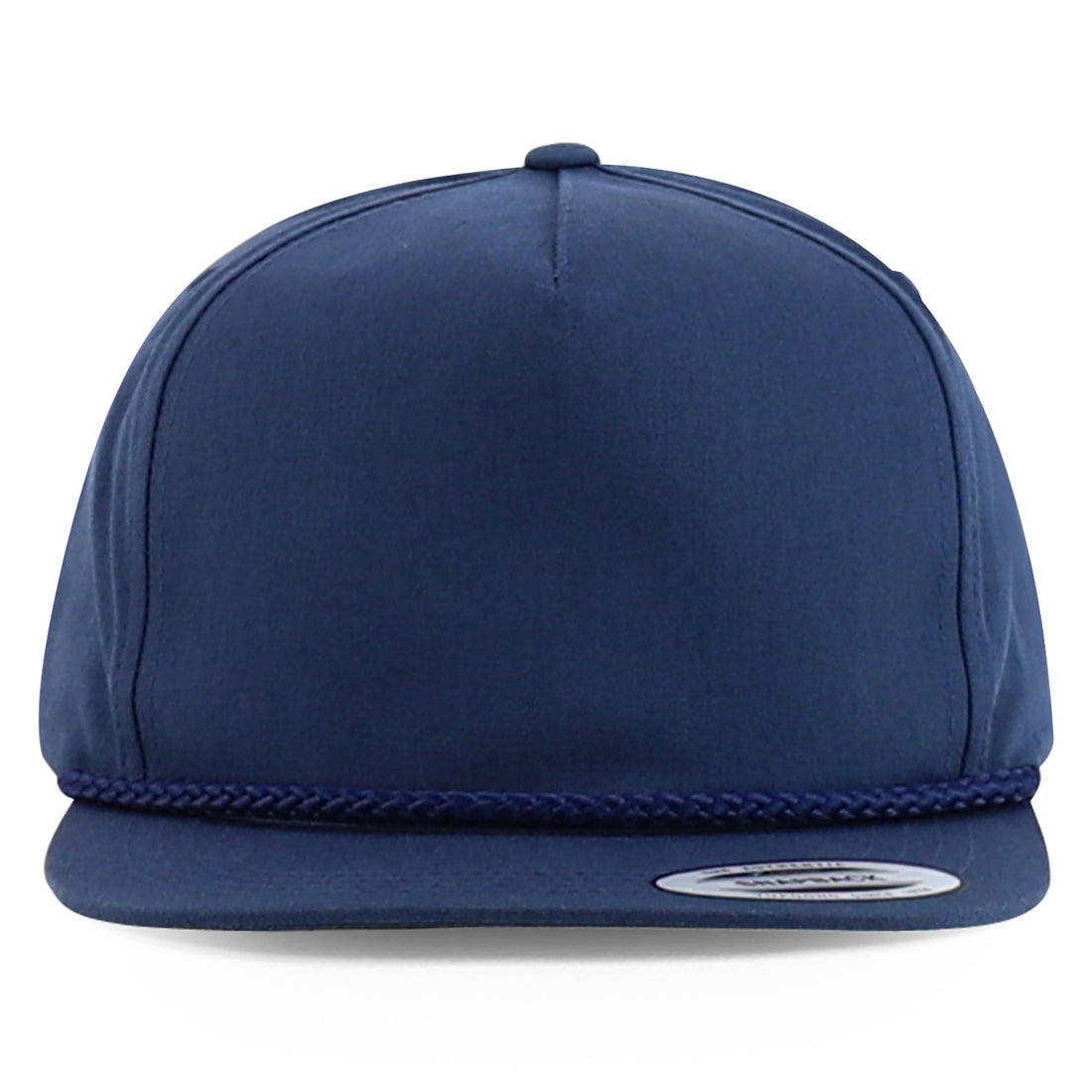 Elevate your golf game and your style with our Oversized XXL 5 Panel Snapback Golf Cap. This cap is designed for those who appreciate both form and function. Crafted with a high-profile, structured crown and 5-panel construction, it offers a classic yet bold look. The sewn eyelets ensure breathability, while the rope accent across the front adds a vintage flair. The stiff, flat bill maintains its shape, with a matching underbill for a sleek, uniform appearance. Thanks to the adjustable plastic snapback closure, this cap provides a secure fit for most big head sizes, comfortably accommodating up to XXL. Whether you're out on the course or simply making a statement with your everyday look, this snapback cap combines timeless style with modern comfort.