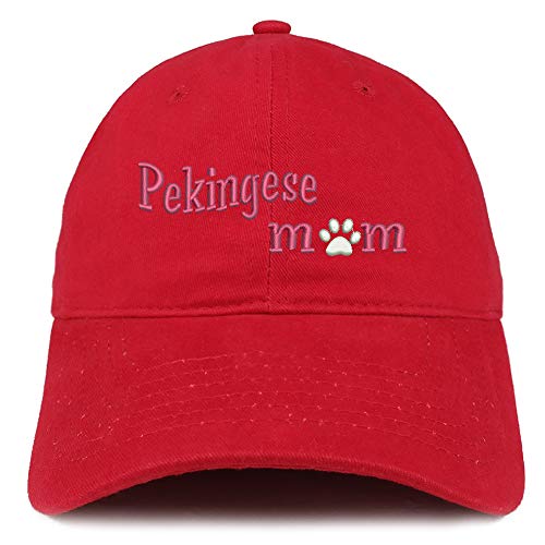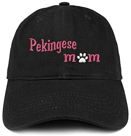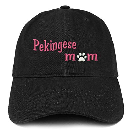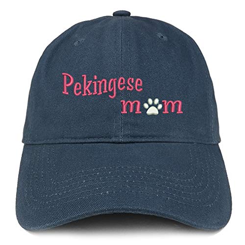 Trendy Apparel Shop Pekingese Mom Embroidered Soft Crown 100% Brushed Cotton Cap