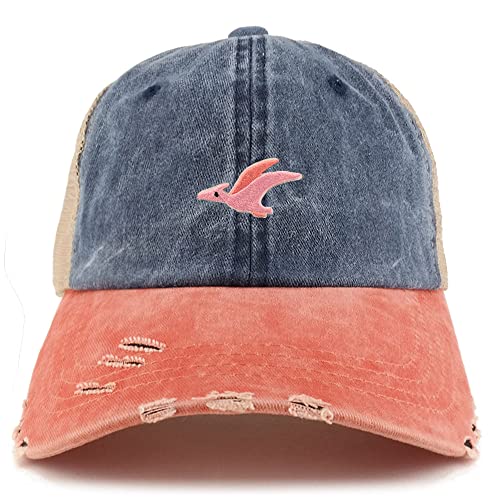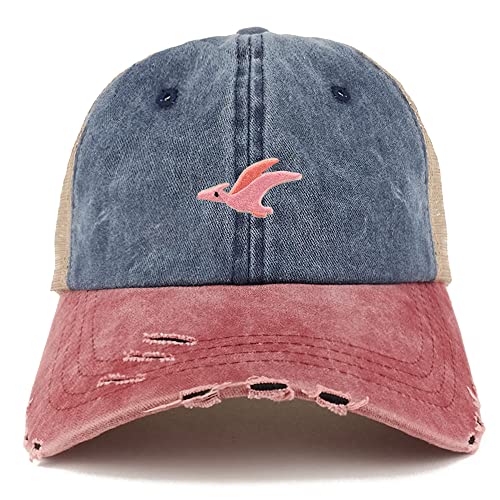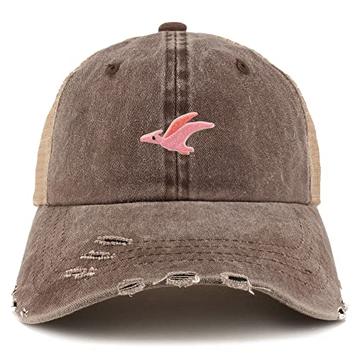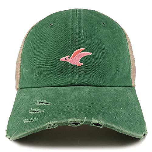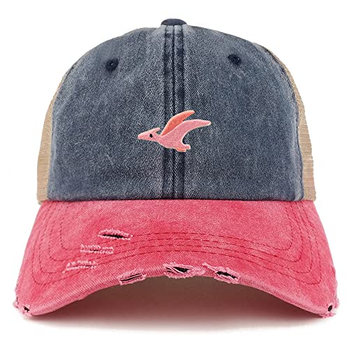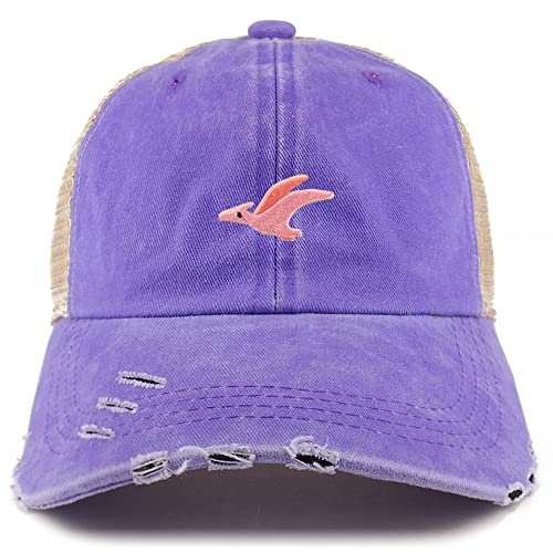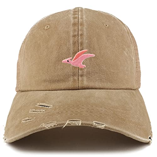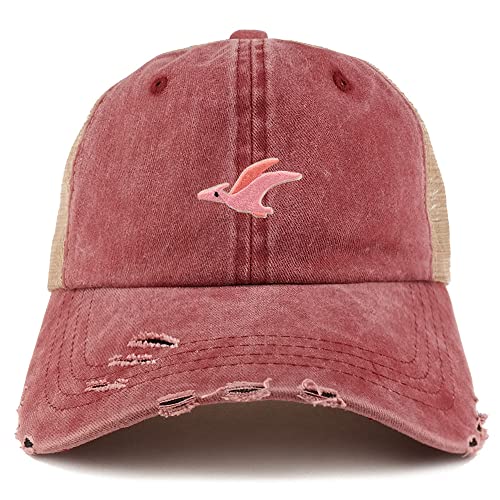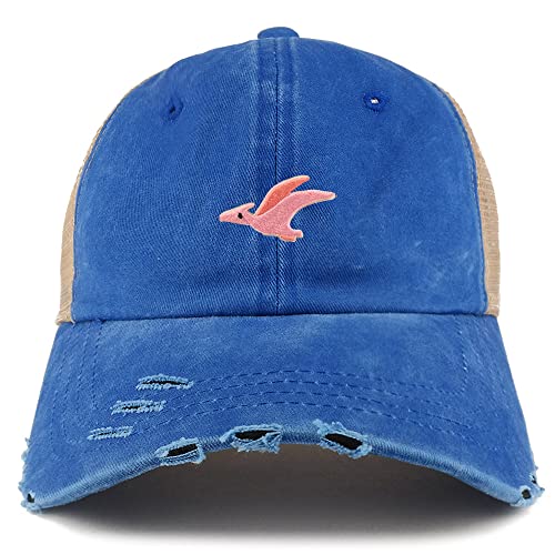 Trendy Apparel Shop Pterodactly Dinosaur Patch Frayed Bill Trucker Mesh Back Cap