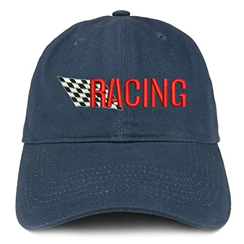 Trendy Apparel Shop Racing Flag Embroidered Soft Crown 100% Brushed Cotton Cap