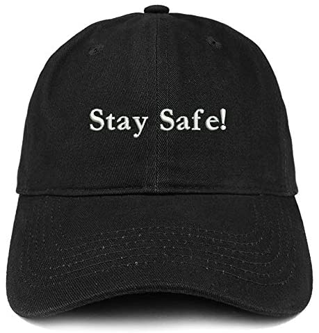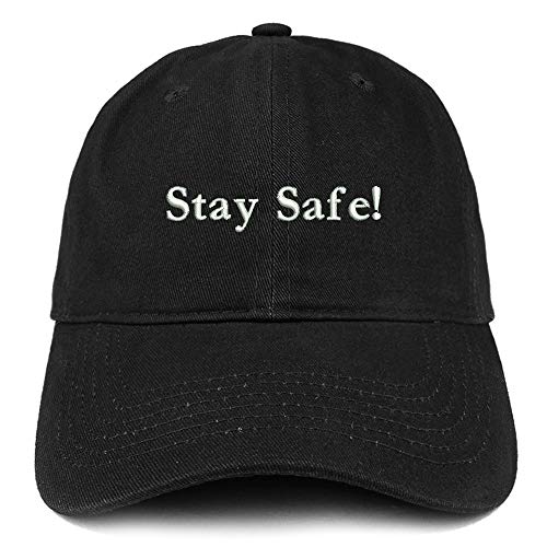 Trendy Apparel Shop Stay Safe Embroidered Soft Crown Cotton Cap. 100% Brushed Cotton Twill. High Quality Cap, EMBROIDERED in the USA. Low Profile, Soft and Unstructured Crown. 6 Panels with 6 Ventilation Eyelets . Self-fabric Adjustable Slide Closure with Buckle. One Size Fits Most.
