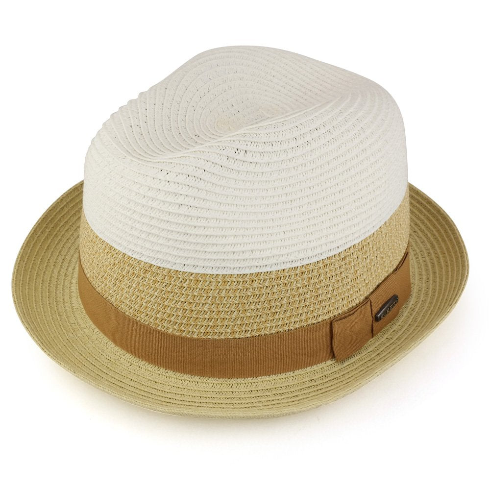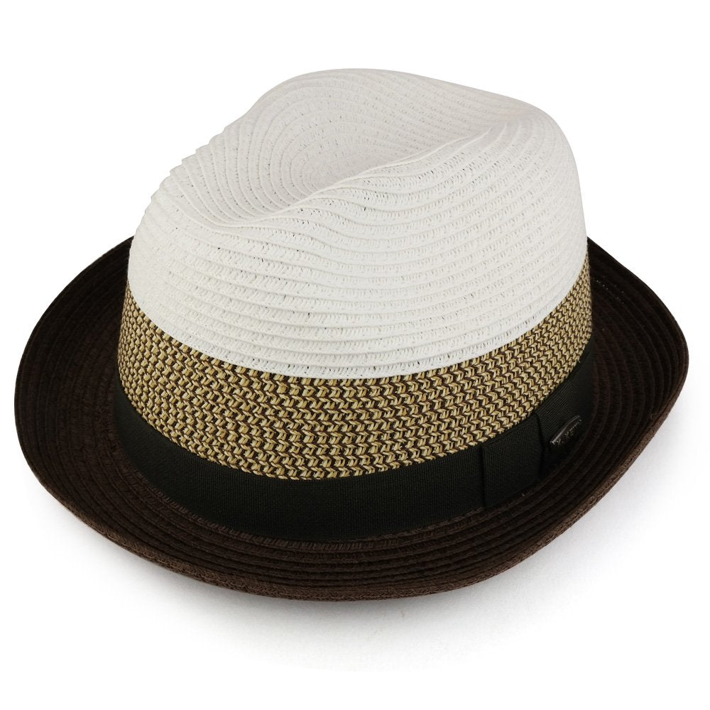 Trendy Apparel Shop Stylish Mens 3-Tone Paper Straw Fedora With Hat Band