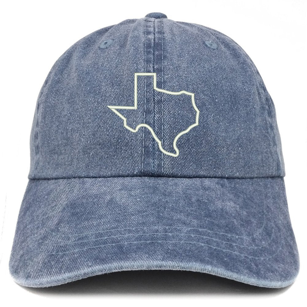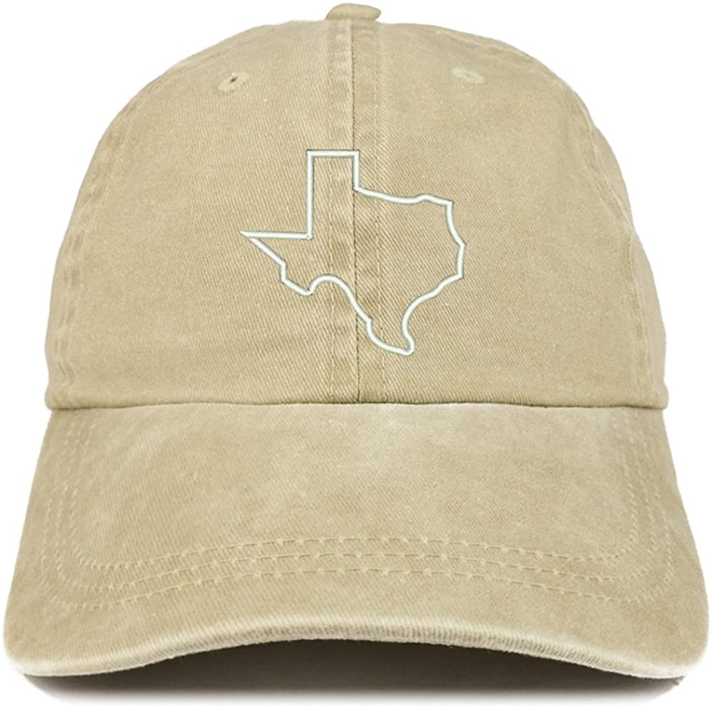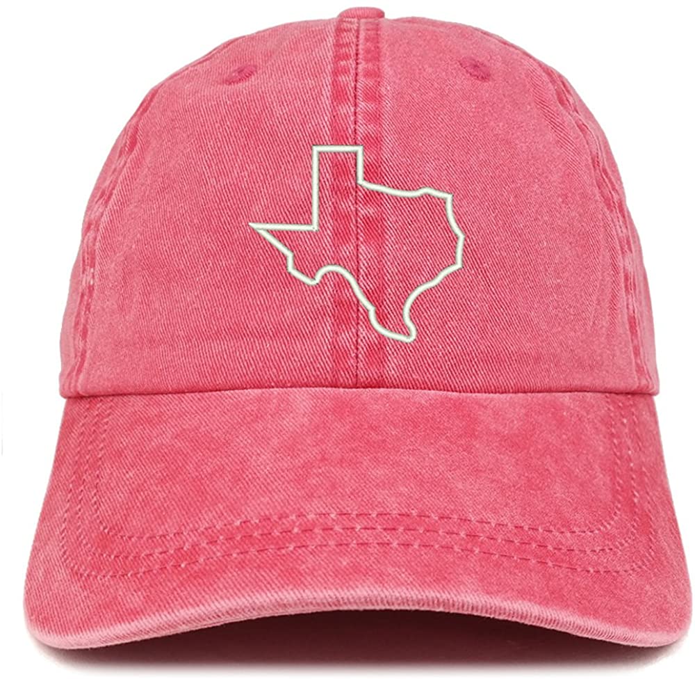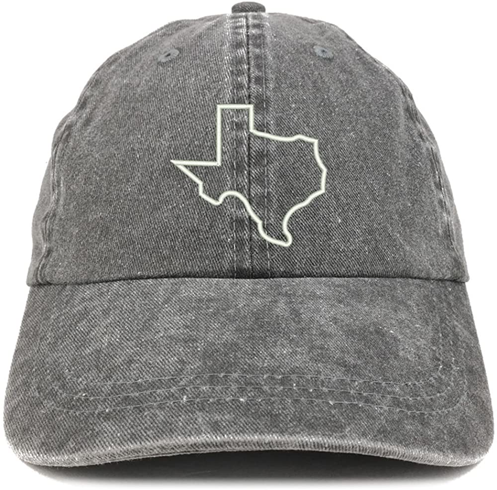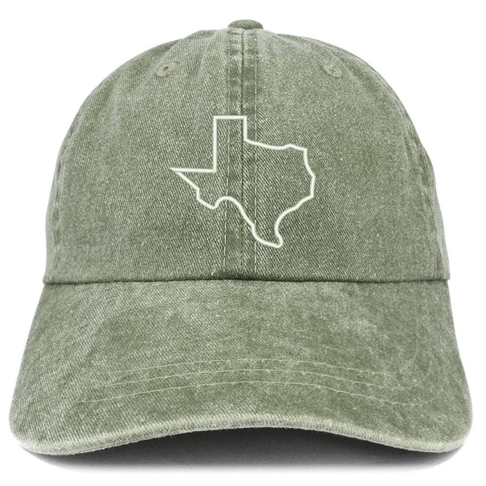 Trendy Apparel Shop Texas State Outline Embroidered Washed Cotton Adjustable Cap - Dark Green