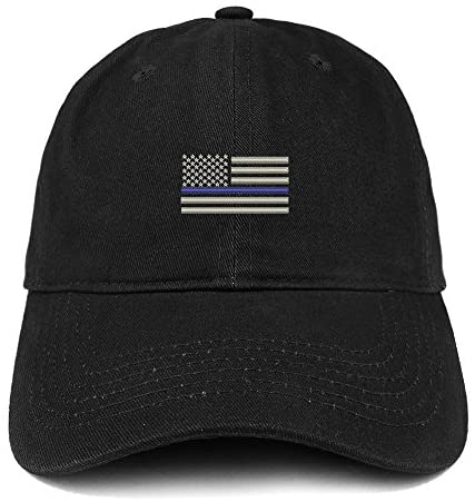 Trendy Apparel Shop Thin Blue Line Small American Flag Embroidered Low Profile Soft Cotton Baseball Cap