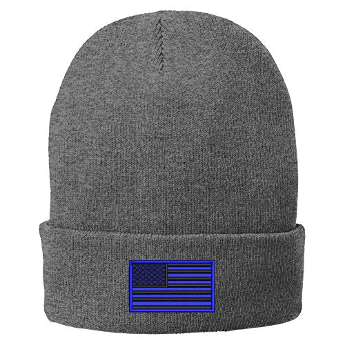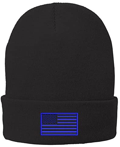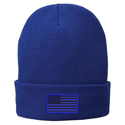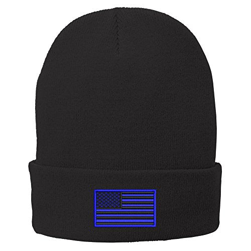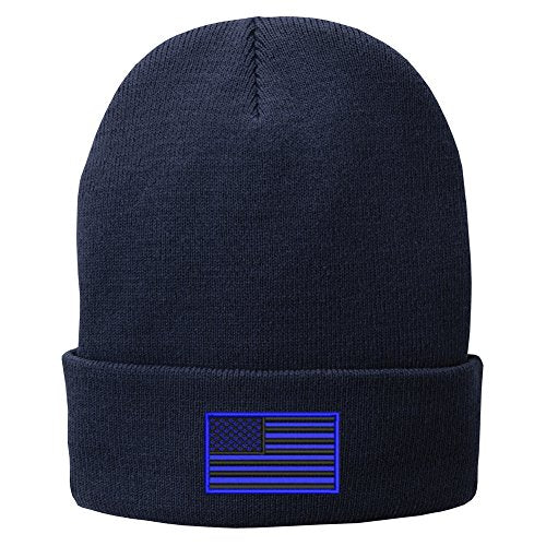 Trendy Apparel Shop US American Flag Blue Embroidered Winter Folded Long Beanie
