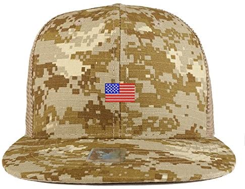 Trendy Apparel Shop US American Flag Small Embroidered Cotton Camo Flat Bill Mesh Trucker Cap