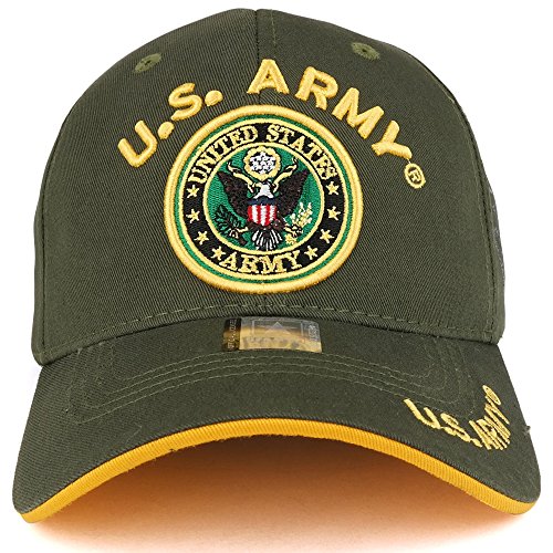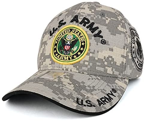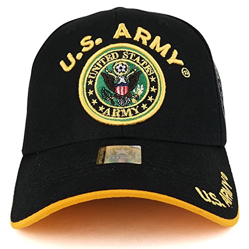 Our high quality US Army Emblem Retired Embroidered Cotton Military Baseball Cap is officially licensed by US Army. This US Army military hat is great for those who retired from US Army. Made of 100% cotton. Stiff and pre curved bill. Constructed and mid profile crown. 6 ventilation eyelets on the crown. Fitted with an adjustable hook and loop closure. One size fits most.